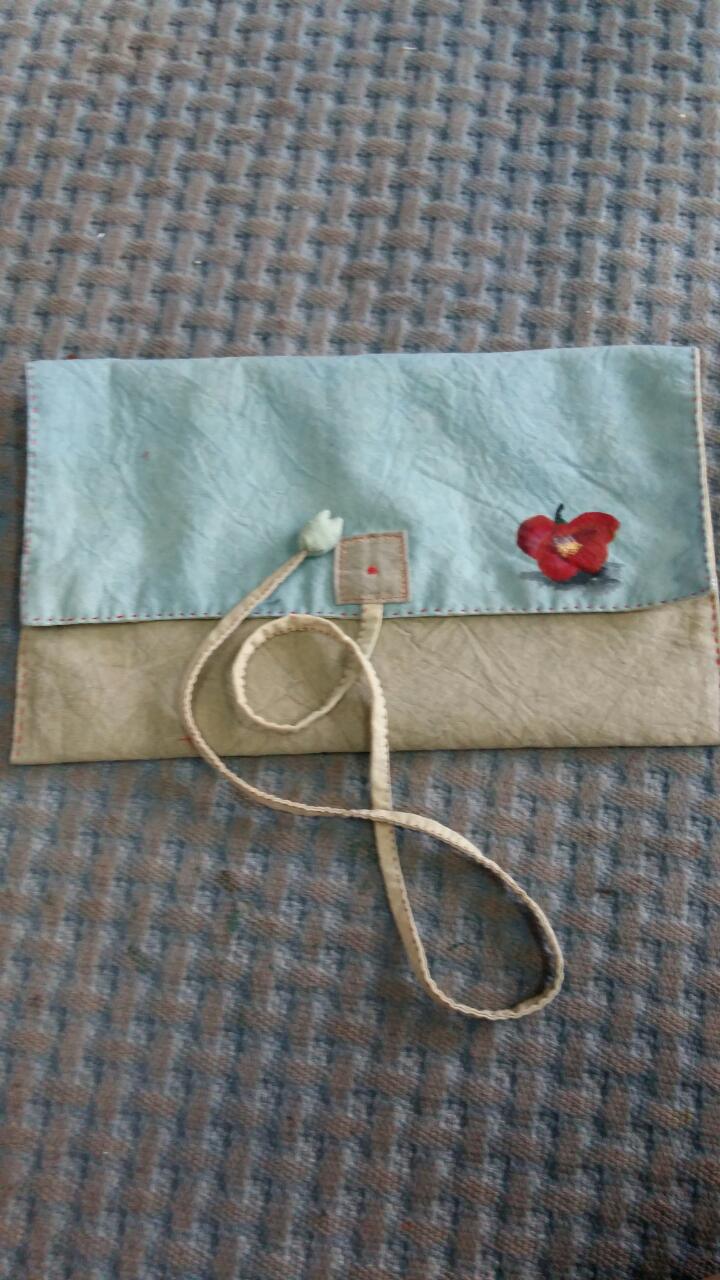 지인에게 선물할 테블릿pc 주머니 염색천에 붉은 동백한송이 일일이 손으로 한땀한땀